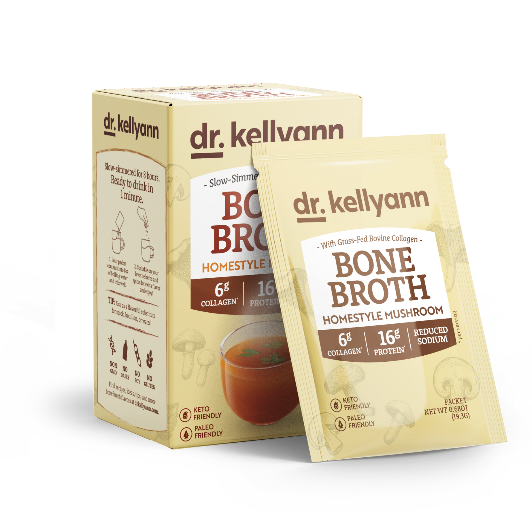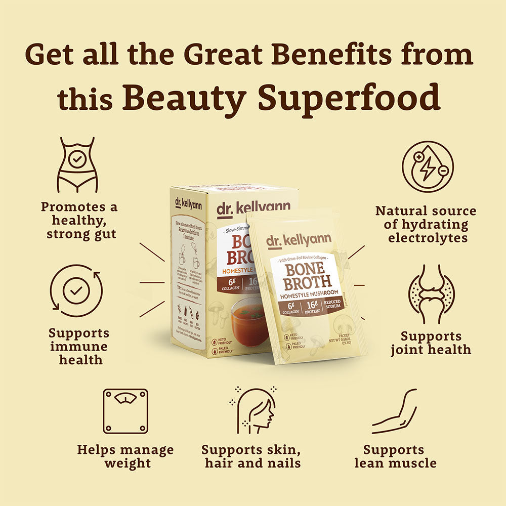 Dr. Kellyann’s Bone Broths are slow-simmered for hours to extract maximum collagen, amino acids, and minerals—nourishing your gut, skin, and joints from the inside out. Unlike store-bought broths, ours deliver rich homemade flavor and real results in convenient single-serve packets. You get all the healing comfort of homemade bone broth—without the time or hassle.