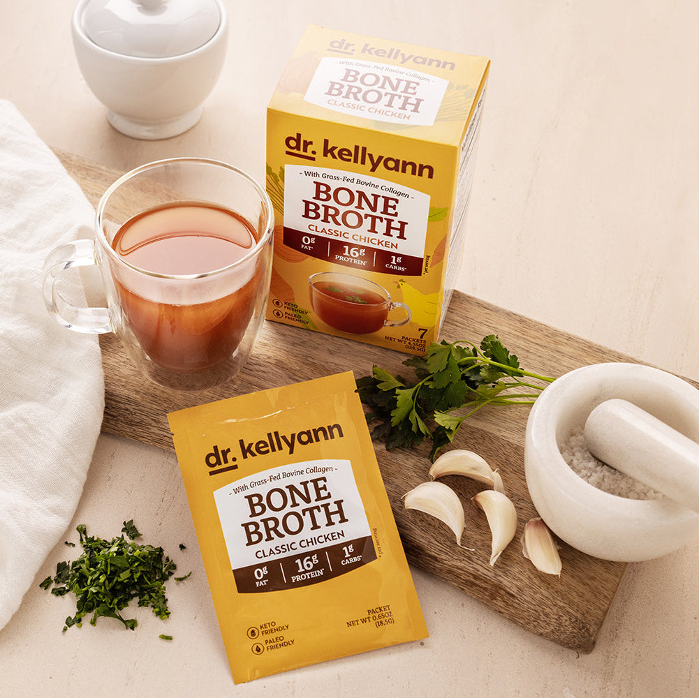 Dr. Kellyann’s Bone Broths are slow-simmered for hours to extract maximum collagen, amino acids, and minerals—nourishing your gut, skin, and joints from the inside out. Unlike store-bought broths, ours deliver rich homemade flavor and real results in convenient single-serve packets. You get all the healing comfort of homemade bone broth—without the time or hassle.