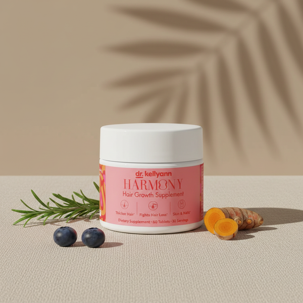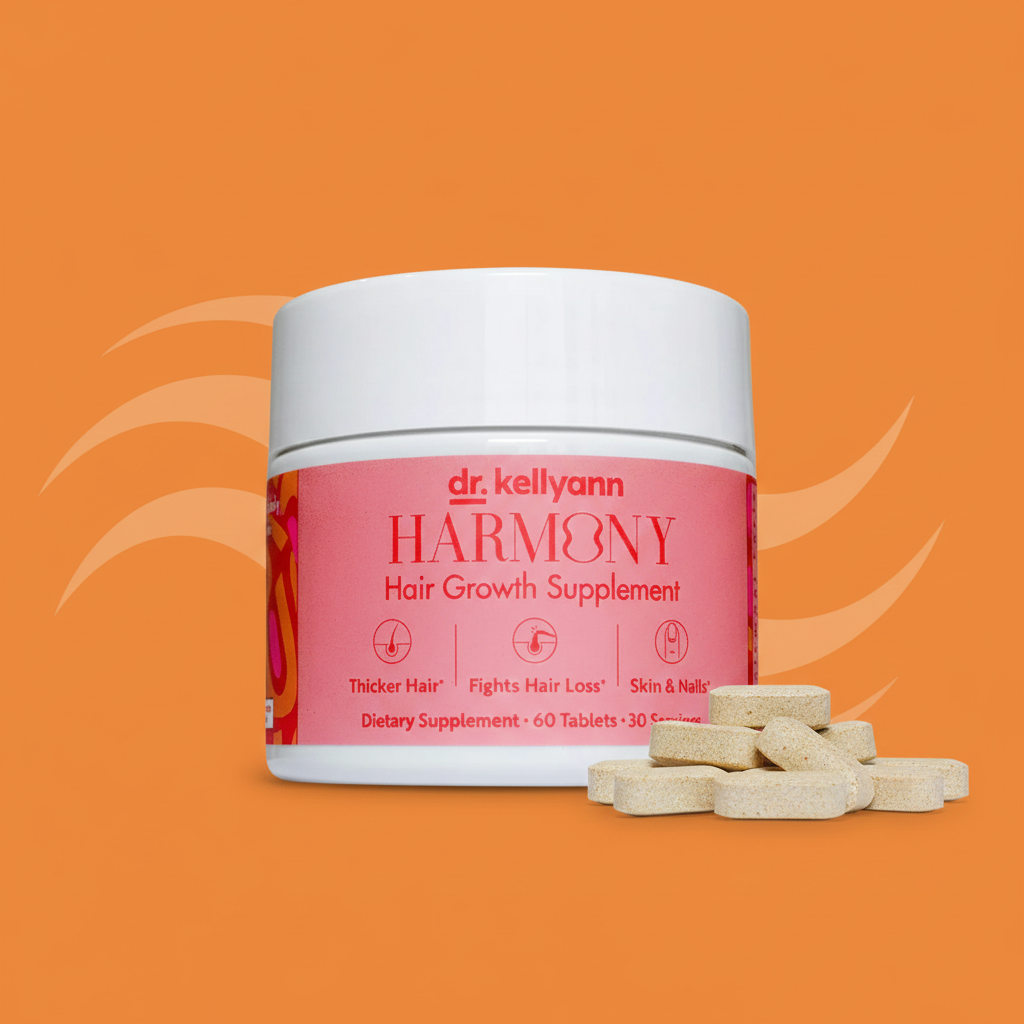 Dr. Kellyann’s Harmony Hair Growth supplement blends collagen peptides, biotin, and essential vitamins to naturally support thicker, fuller hair and stronger nails. This clean, collagen-powered formula works from the inside out to help reduce hair thinning while nourishing scalp and skin health. Learn more about our collagen-based wellness line at Dr. Kellyann.com.