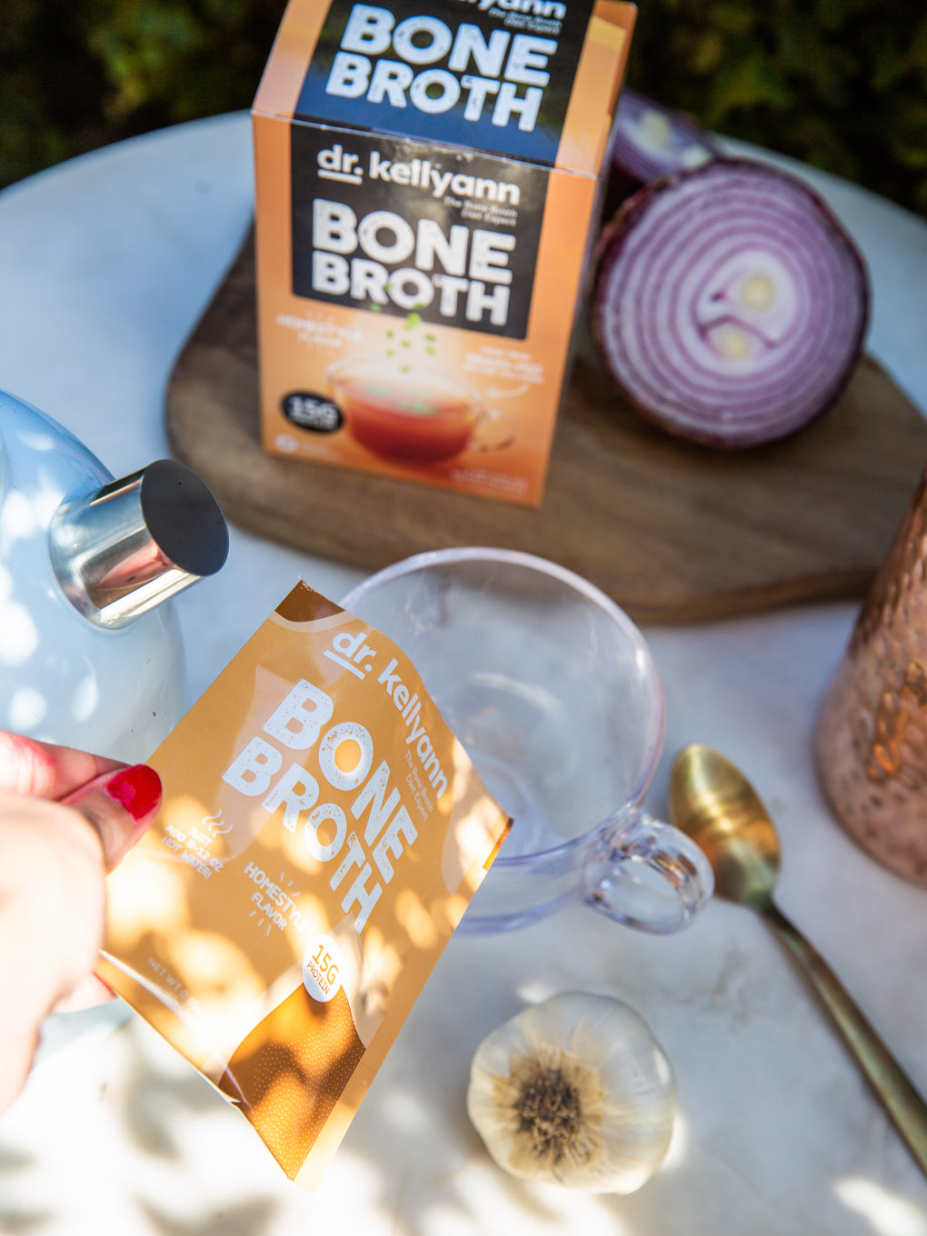 My bone broth is the easiest way to load your body with essential nutrients, support your gut health, control cravings, and help you slim down. This pack includes 7 single-serving packets of my mouthwatering, cage-free chicken bone broth. Just add hot water and enjoy!