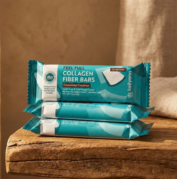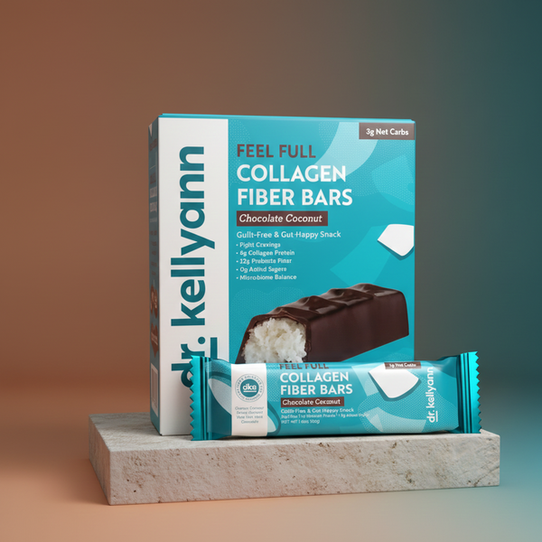 Dr. Kellyann’s Collagen Fiber Bars combine 12 grams of prebiotic fiber with 4 grams of grass-fed collagen protein, creating a delicious and functional snack that supports gut balance and beauty from within. Unlike most protein bars, they’re keto and paleo-friendly, made without artificial sweeteners, gluten, or GMOs. You can explore more of our collagen-infused products here.