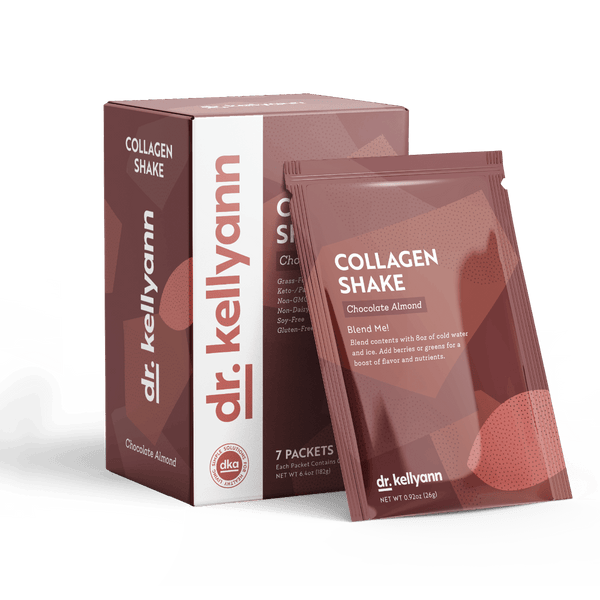 Dr. Kellyann’s Collagen Shake – Chocolate Almond combines 15g of grass-fed collagen protein with the rich, indulgent taste of cocoa and almond. It’s a low-carb, keto-friendly shake designed to help support skin elasticity, muscle recovery, and gut health — all while satisfying your sweet cravings. Learn more about Dr. Kellyann’s collagen-powered wellness approach at Dr. Kellyann.com.